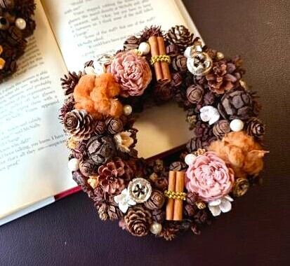 自然素材を活かした【木の実ぎっしりクランツ】は、独特のテクスチャーと豊かな風合いが魅力的なインテリアアイテム。綿の実やユーカリの実などにシナモンを加え、ナチュラルな商品に仕上げました。リビングや玄関のインテリアにぴったりです。ご自宅用にはもちろん、ギフトとしても喜ばれるアイテムです。